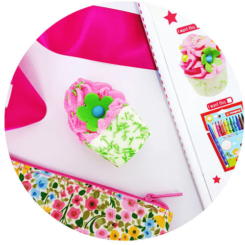 • Bath bomb with a fruity apple and raspberry scent