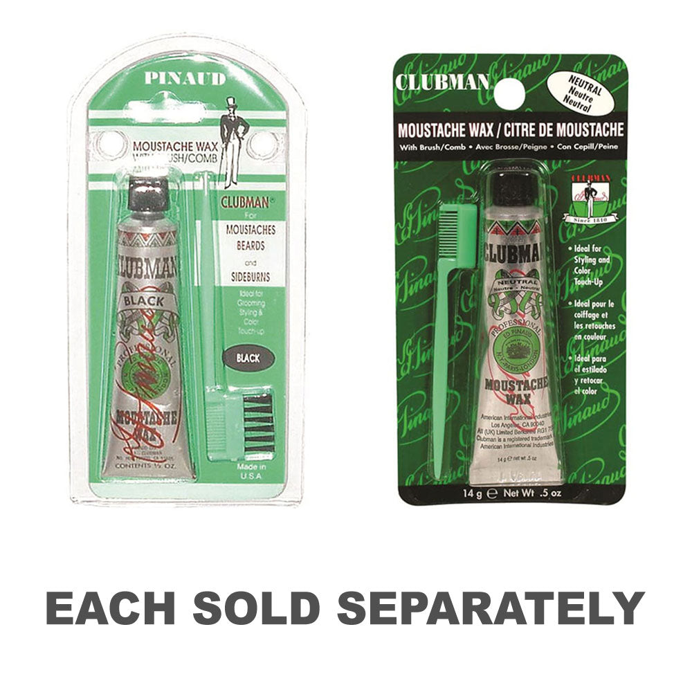 - Neutral Moustache Wax by Clubman in a convenient 14g size, ideal for styling without adding color