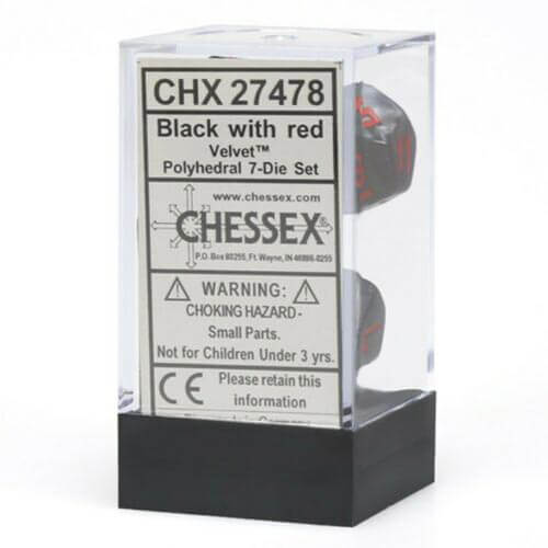 D7 Die Set Dice Velvet Polyhedral (7 Dice/Black/Red)