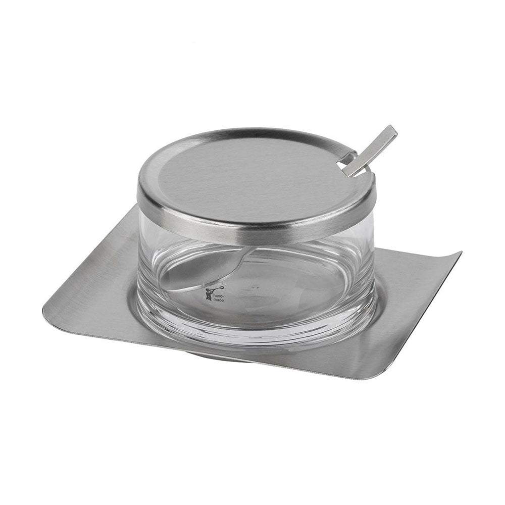 • The jam pot comes with a coaster, lid, and serving spoon.