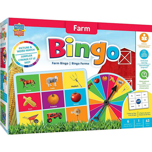• 6 double-sided game boards, 63 bingo tokens and 1 game spinner