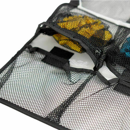 • 16 mesh Hook-and-Loop Fastener Pockets and 16 matching mesh zippered bags.