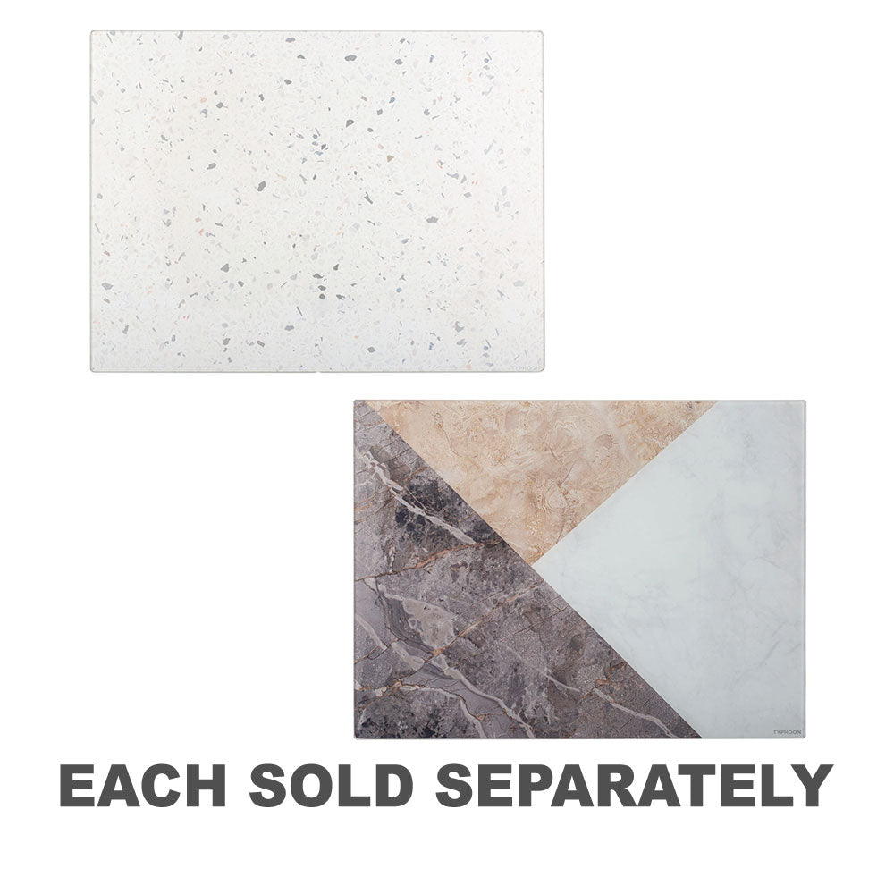 The Typhoon Elements Quartz Effect Glass Work Surface Protector is both practical and versatile as it can be used to prepare meals, protect work surfaces, and for placing hot pans and dishes. With a beautiful, eye-catching quartz print, the flecks of mirror sparkle in the light, mimicking the effect of natural quartz material. The non-slip feet give a stable and secure contact while protecting surfaces from scratches. Strong and durable, this Protector is made from tempered glass which is odour and stain resistant and can withstand up to 180Deg of heat. Easy to clean, the board is perfect for serving appetizers, desserts, or charcuterie and will add an elegant touch to your next dinner party.