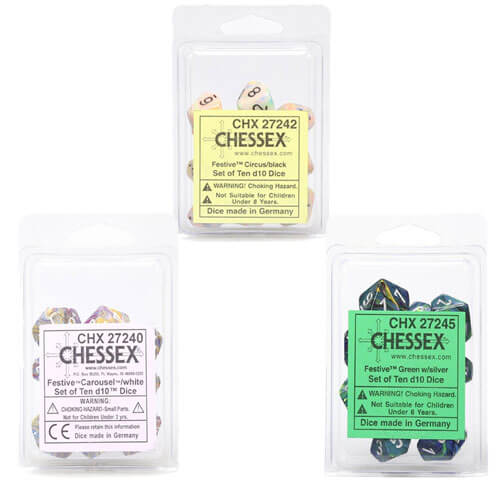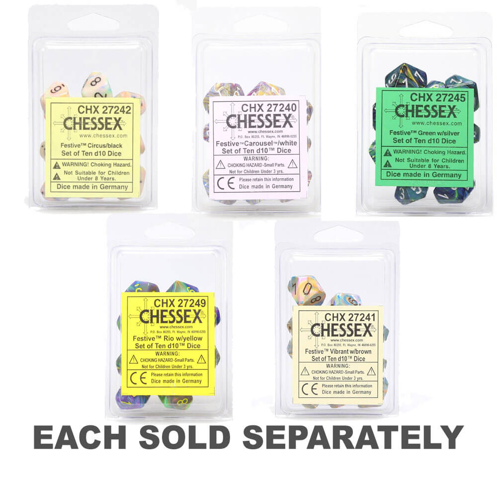 Chessex D10 Ensemble festif de 10 matrices polyédriques