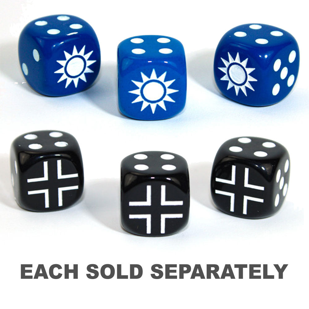 Axis and Allies China d6 Blank 1 Face Opaque Blue/white ~ Multiple loose dice are pictured to show all sides and possible color variations. Item Code is for individual dice.