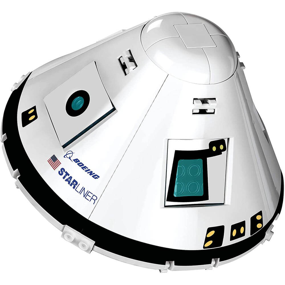Le Boeing cst-100 starliner est un vaisseau spatial habité conçu et construit par la société américaine Boeing co. En collaboration avec bigelow aerospace, il est conçu pour transporter des personnes vers la station spatiale internationale (ISS) et vers une station orbitale privée. La capsule starliner est tirée dans l'espace par des fusées porteuses. Ce nouveau modèle de bloc de construction de COBI comporte des pièces mobiles telles que des écoutilles et des surfaces latérales de la capsule ainsi que les sièges de l'équipage. Véritable représentation fidèle du véhicule réel ravira à coup sûr tous les collectionneurs et passionnés de technologies aéronautiques et spatiales. Il convient également parfaitement comme jouet même pour les plus jeunes fans de blocs. Il comprend deux figurines de casques d'équipage avec un rideau ouvert. C'est aussi un ensemble publié dans la série STEM (science, technologie, ingénierie, mathématiques) produite sous licence de Boeing.