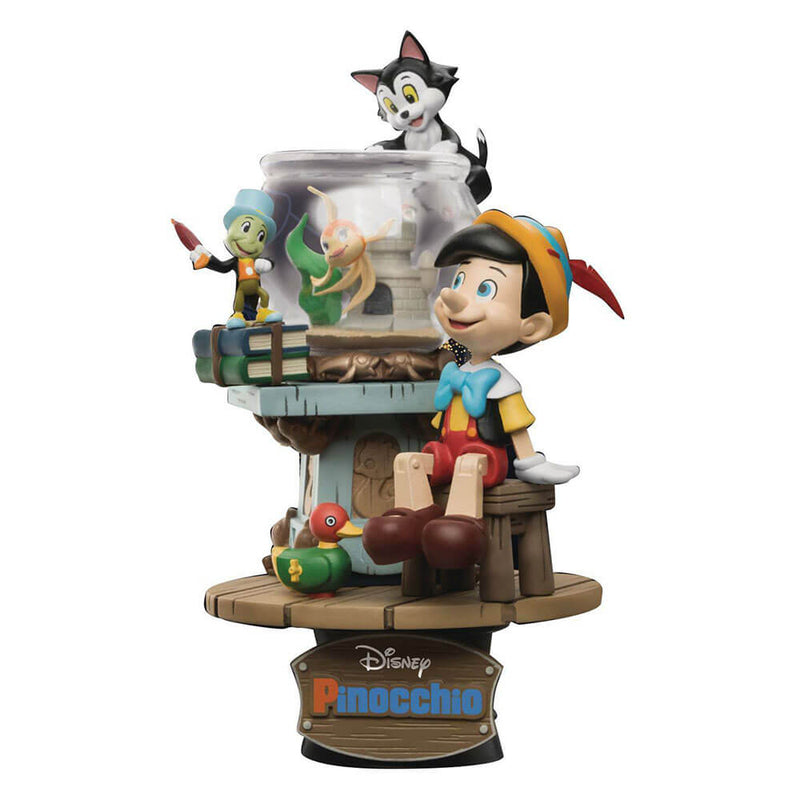 La deuxième animation de Disney, le classique "Pinocchio" de 1940, l'histoire d'une marionnette en bois animée par une fée bleue magique, après avoir été sculptée par un vieux sculpteur sur bois nommé Geppetto ! Un personnage chaleureux dont le seul rêve est de devenir un vrai garçon ! Avec son ami de confiance, Jiminy Cricket à ses côtés, il doit s'assurer de ne pas mentir, sinon toutes sortes de mésaventures se produiront avec son nez qui grossit ! Le diorama D-Stage Pinocchio met en scène notre héros regardant dans les étoiles, avec tous ses amis à ses côtés, un ensemble qui met en valeur l'émerveillement de l'enfance !