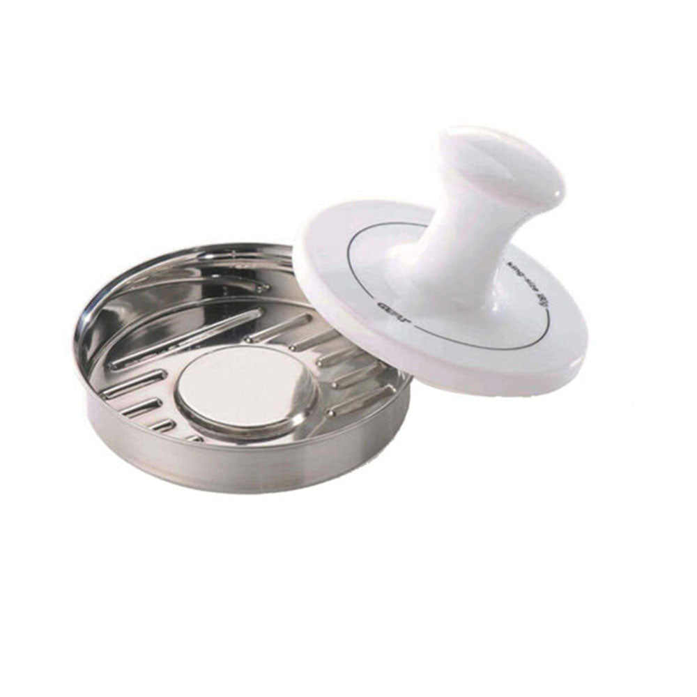 Avec cet ensemble de hamburger de la marque GEFU, vous pouvez faire un hamburger fait maison en un rien de temps. L'ensemble se compose d'un moule rond de hamburger et d'une presse en porcelaine. En utilisant la presse, le hamburger obtient une construction solide et le hamburger ne s'effondre pas pendant la cuisson. L'ensemble de hamburgers vous donne la possibilité d'expérimenter avec différents ingrédients lors de la fabrication d'un savoureux hamburger.