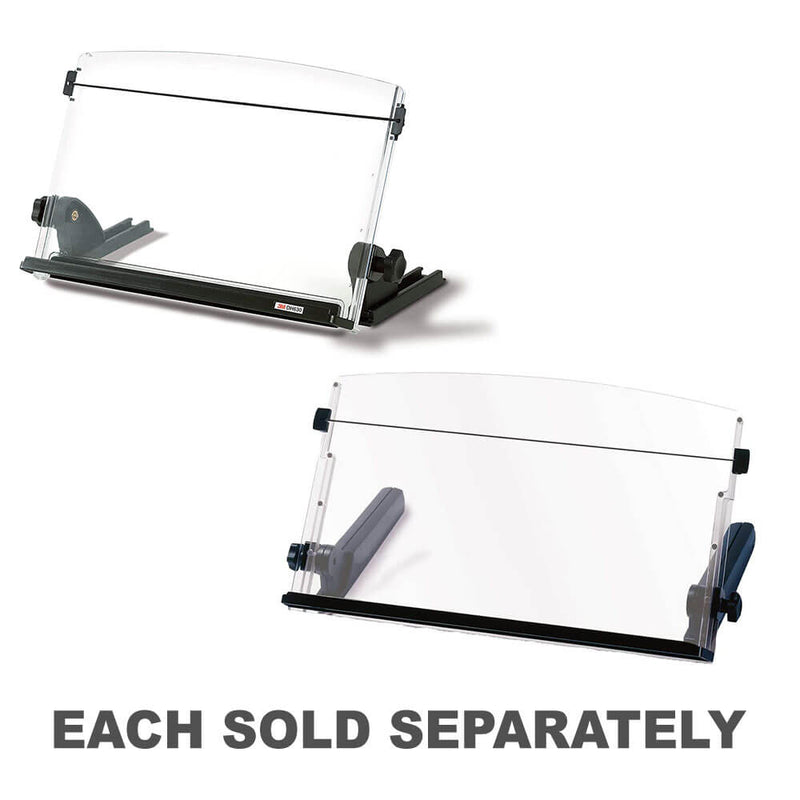 Le support de document en ligne réglable 3M avec un guide de ligne élastique place les documents en ligne avec votre moniteur et le clavier réduisant le mouvement des yeux, du cou et des épaules minimisant la tension et l'augmentation du confort. La base pondérée stable permet à un rebord de plonger sous le bord du bureau augmentant l'espace de bureau. Le guide de ligne élastique marque, garde les pages ouvertes et s'étire pour accueillir même les livres les plus épais. La plaque arrière de 18 "large et la capacité de 300 feuilles prennent en charge les livres, les catalogues et à peu près n'importe quel document de taille. L'angle et la hauteur s'adaptent à vos besoins. Noir / clair. 40% de contenu recyclé pré-consomment.